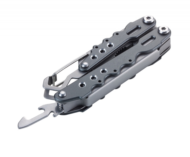 7 praktycznych funkcji w kompaktowej formie: szczypce, obcinacz, otwieracz do puszek, śrubokręt płaski, nożyczki, karabińczyk, uchwyt na klucze / przecinak do kabli i nici