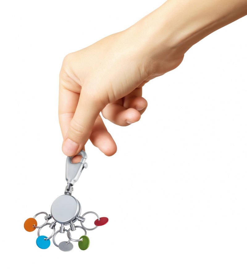 funkcja opatentowanego organizera do kluczy: łatwe zaczepianie i wymiana kółek dla wygodnego korzystania z poszczególnych kluczy, z możliwością rozbudowy o dodatkowe kółka