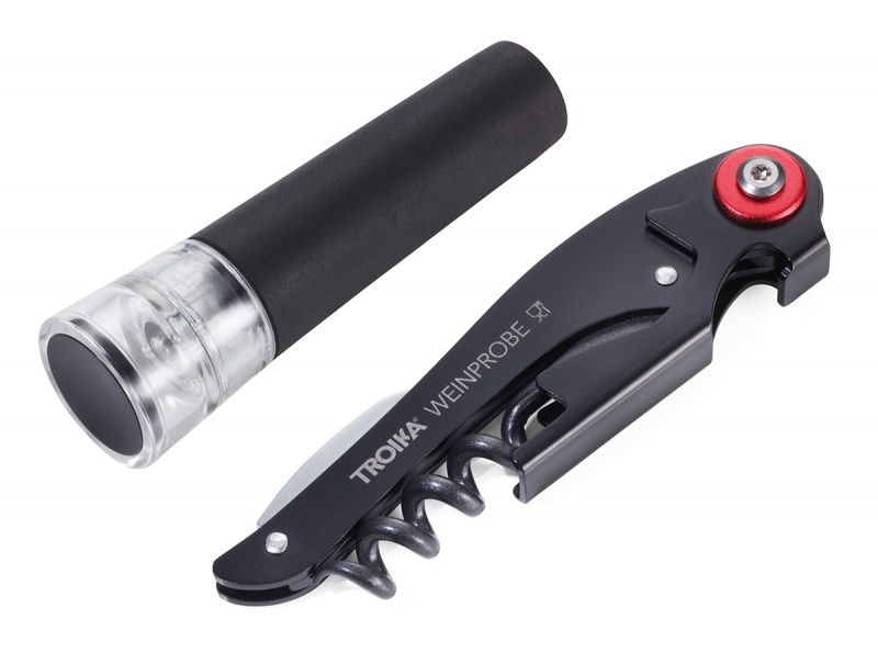 zestaw składający się z noża kelnerskiego i próżniowego korka do butelek