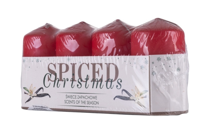 Świeca słupek DONAU HOME Spiced Christmas, 40x70mm, 4 szt., wanilia, czerwony